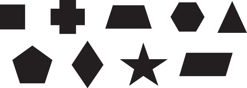 Voici quelques polygones. On remarque que le cercle n’est pas un polygone, car il a une ligne courbe :